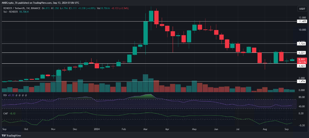- 截至 2024 年 9 月,RENDER 仍处于 熊市 。