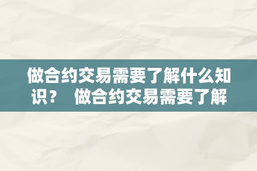 做合约交易需要了解什么知识? 做合约交易需要了解什么知识和技能