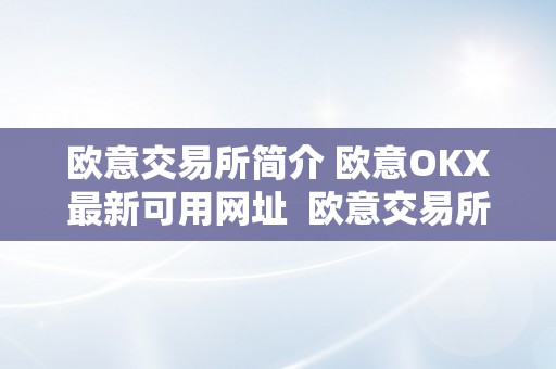 欧意交易所简介 欧意OKX最新可用网址 欧意交易所正规吗