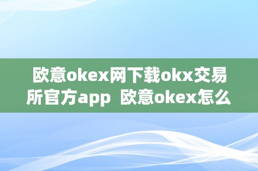 欧意okex网下载okx交易所官方app 欧意okex怎么交易