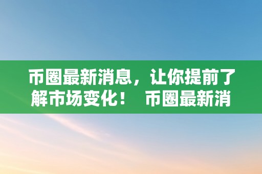 币圈最新消息:让你提前了解市场变化!