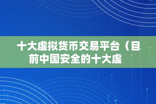中国有许多安全可靠的虚拟货币交易平台,用户可以在这些平台上进行各种虚拟货币的交易和存储。在选择交易平台时,用户应该注意平台的安全性、交易费用、用户体验等因素,选择适合自己的交易平台进行操作。希望本文介绍的十大虚拟货币交易平台能够帮助用户更好地了解和选择合适的交易所。