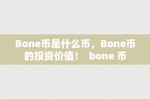 探索Bone币的投资价值:了解这种加密货币的潜力和前景