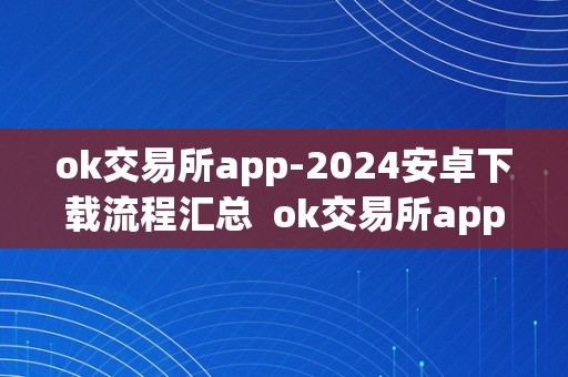 OK交易所APP-2024安卓下载流程汇总及OK交易所APP官网下载