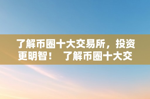了解币圈十大交易所,投资更明智! 了解币圈十大交易所,投资更明智的原因