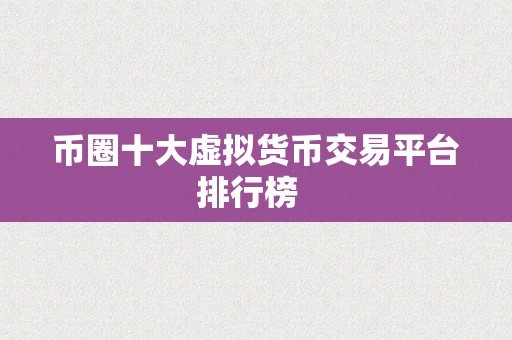 币圈十大虚拟货币交易平台排行榜