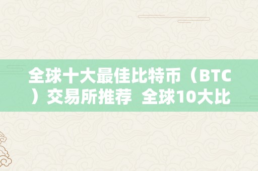 全球十大最佳比特币交易所推荐