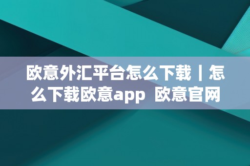 欧意外汇平台怎么下载|怎么下载欧意app 欧意官网下载