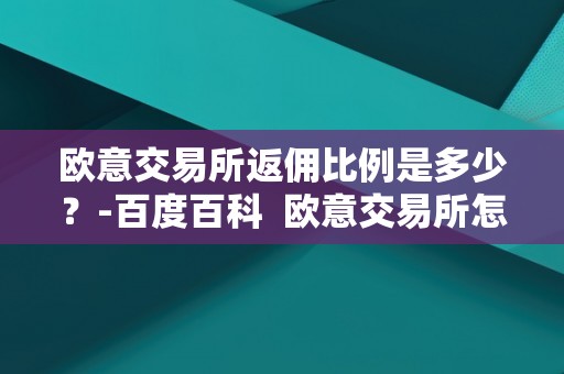欧意交易所返佣比例是多少?-百度百科 欧意交易所怎么样