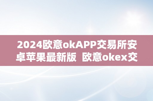 2024欧意okAPP交易所安卓苹果最新版 欧意okex交易所