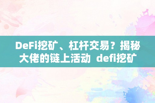 DeFi挖矿、杠杆交易?揭秘大佬的链上活动及defi挖矿本金有风险吗