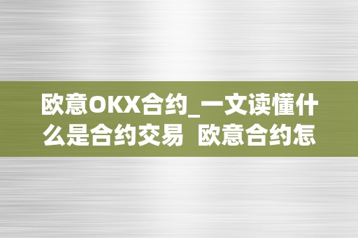 欧意OKX合约_一文读懂什么是合约交易 欧意合约怎么玩
