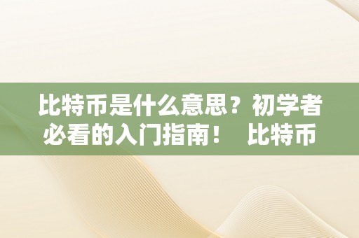 比特币是什么意思?初学者必看的入门指南! 比特币是什么意思呢