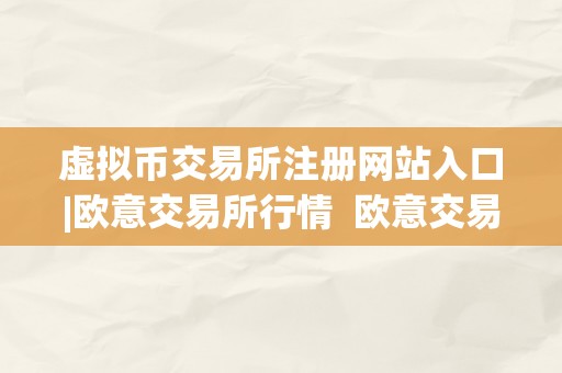 虚拟币交易所注册网站入口|欧意交易所行情 欧意交易所官网