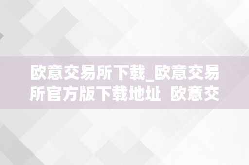 欧意交易所下载_欧意交易所官方版下载地址 欧意交易所正规吗