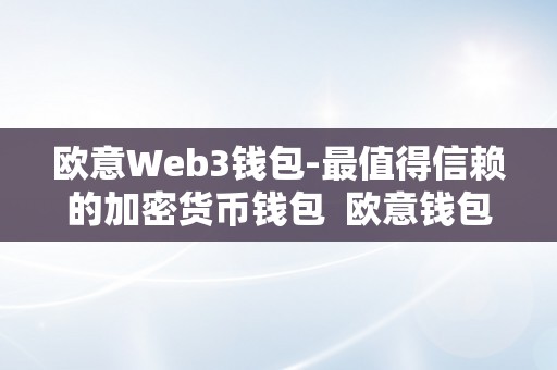 欧意Web3钱包-最值得信赖的加密货币钱包
