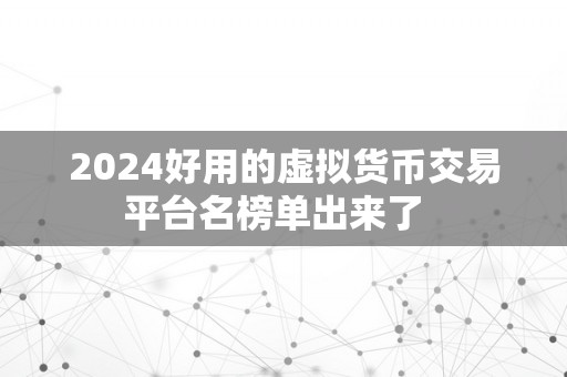2024年最好用的虚拟货币交易平台名榜单出炉!