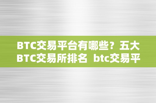 以上五大BTC交易所在行业内具有较高的知名度和信誉度,用户可以根据自己的需求和偏好选择适合自己的交易平台进行投资。在选择交易平台时,用户应注意平台的安全性、交易费用、交易品种等因素,以确保交易的顺利进行。希望以上信息对您有所帮助,祝您在数字货币交易中取得成功!
