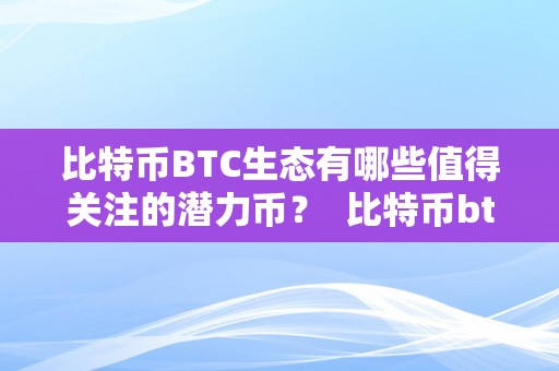 比特币(BTC)作为最早的加密货币之一,一直是加密货币市场的领头羊。随着加密货币市场的不断发展和扩大,比特币生态系统也在不断壮大,涌现出了许多值得关注的潜力币。这些潜力币在比特币生态系统中发挥着重要的作用,为整个行业的发展注入了新的活力。