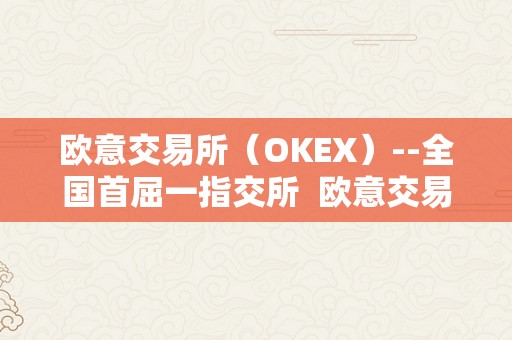 欧意交易所(OKEX)--全国首屈一指交所及欧意交易所官网