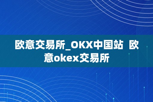 欧意交易所_OKX中国站:探索数字资产交易的新时代