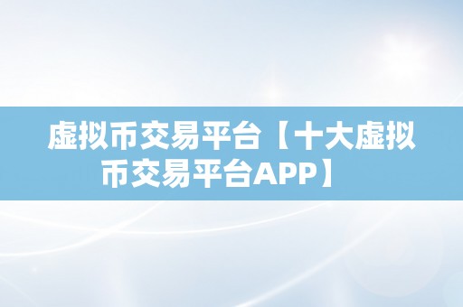 虚拟币交易平台【十大虚拟币交易平台APP】