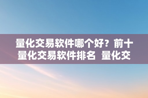 在市场上有许多量化交易软件可供选择,但哪家软件更好呢?以下是前十量化交易软件排名,供您参考: