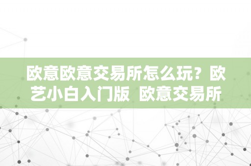 欧意欧意交易所怎么玩?欧艺小白入门版及欧意交易所正规吗