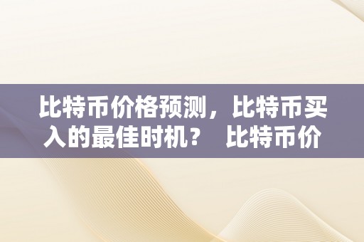 比特币价格预测,比特币买入的最佳时机? 比特币价格预测,比特币买入的最佳时机是什么