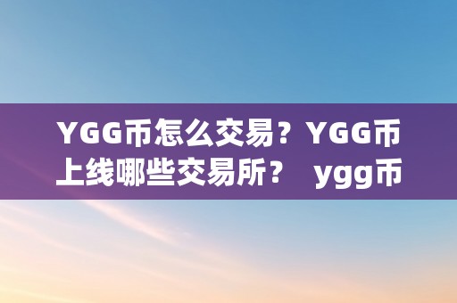 YGG币怎么交易?YGG币上线哪些交易所? ygg币怎么样