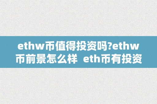 ETHW币值得投资吗? ETHW币前景如何? ETH币有投资价值吗?