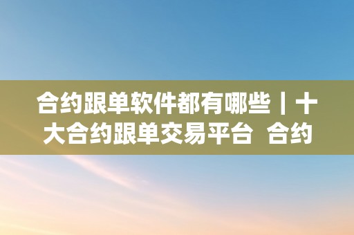 合约跟单软件都有哪些|十大合约跟单交易平台 合约跟单app