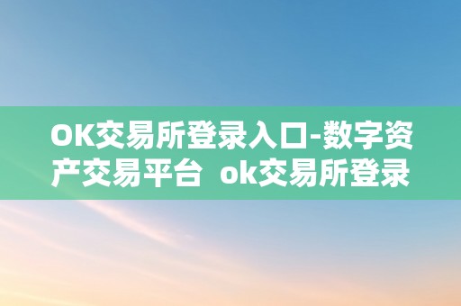 OK交易所登录入口-数字资产交易平台及ok交易所登录网址