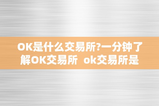 OK是什么交易所?一分钟了解OK交易所 ok交易所是哪里的