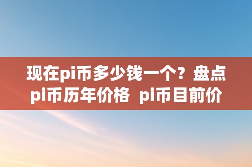 现在pi币多少钱一个?这是许多人关心的一个问题。随着加密货币市场的不断发展,越来越多的人开始关注pi币这一新兴的加密货币。pi币目前的价格是多少呢?让我们来盘点一下pi币的历年价格,以及它目前的价值。