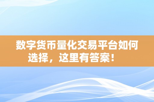 数字货币量化交易平台如何选择,这里有答案!