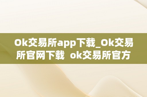 Ok交易所app下载_Ok交易所官网下载及ok交易所官方下载