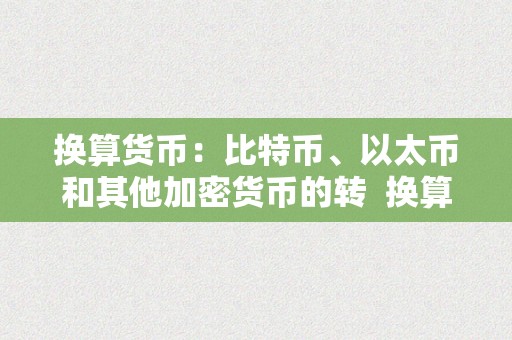 换算货币:比特币、以太币和其他加密货币的转 换算货币:比特币,以太币和其他加密货币的转换