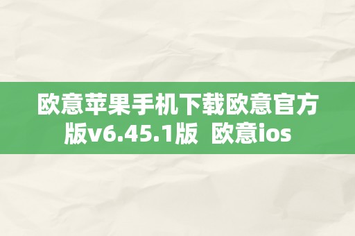 欧意苹果手机下载欧意官方版v6.45.1版及欧意ios