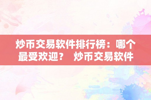 在当今数字货币市场的繁荣时代,炒币交易软件成为了许多投资者的首选工具。随着市场的不断发展和创新,越来越多的炒币交易软件涌现出来,让投资者有更多的选择。但是在众多软件中,哪个才是最受欢迎的呢?让我们来看看炒币交易软件排行榜,找出最受欢迎的软件是哪个。