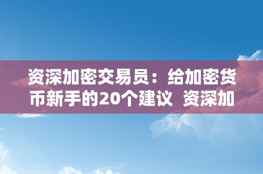资深加密交易员:给加密货币新手的20个建议 资深加密交易员:给加密货币新手的20个建议是什么