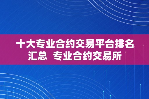 以上是目前市场上排名较高的十大专业合约交易平台,它们在合约交易领域具有较高的知名度和影响力,为广大合约交易者提供多样化的交易产品和服务。投资者在选择合约交易平台时,可以根据自身需求和偏好,选择适合自己的平台进行交易,以获取更好的投资回报。