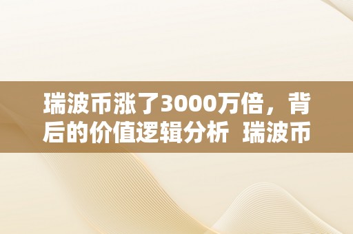 近年来,瑞波币的价格经历了一次惊人的涨幅,据统计,其涨幅高达3000万倍。这一数字令人震惊,许多人开始怀疑瑞波币是否存在泡沫。要理解瑞波币的真正价值,我们需要深入分析其背后的逻辑。