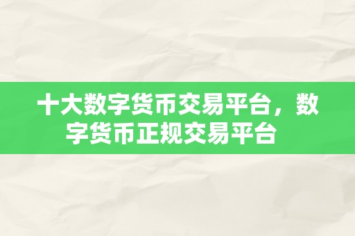 十大数字货币交易平台推荐:选择数字货币正规交易平台的重要性