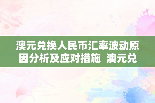 澳元兑换人民币汇率波动原因分析及应对措施 澳元兑换人民币汇率波动原因分析及应对措施