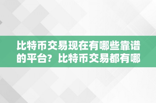 比特币交易现在有哪些靠谱的平台? 比特币交易都有哪些平台