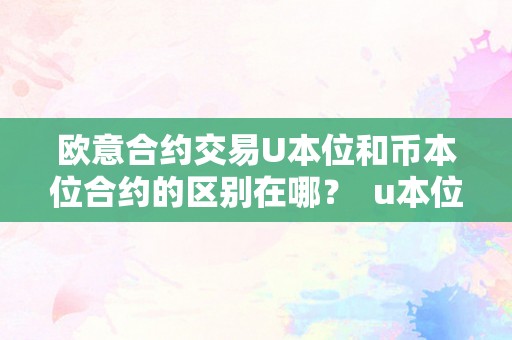 欧意合约交易U本位和币本位合约的区别在哪? u本位合约和币本位合约有什么区别