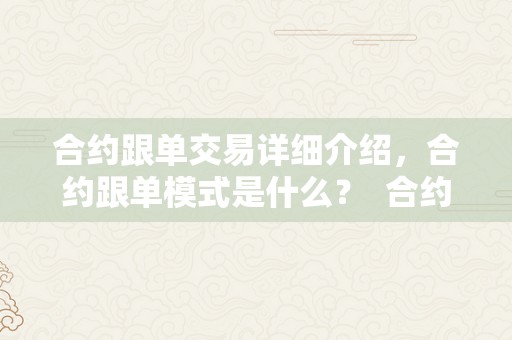 合约跟单交易详细介绍,合约跟单模式是什么? 合约跟单交易详细介绍,合约跟单模式是什么意思