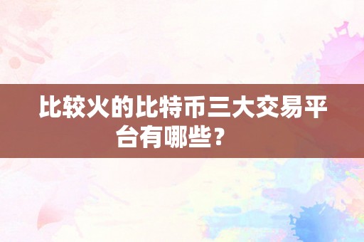 比特币交易平台比较:哪些是目前最受欢迎的三大交易平台?