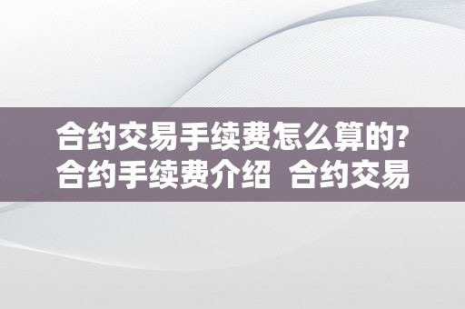 合约交易手续费怎么算的?合约手续费介绍 合约交易手续费计算